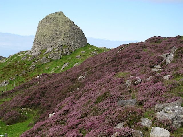 The site is framed by the loch in front of the house and the ridge behind, providing a picturesque setting and shelter from the weather. As you walk up the site, the loch opens up, revealing its "H" shape and small island in the middle. We're told that in dry weather it's possible to walk to the island over stepping stones from the southerly bank.